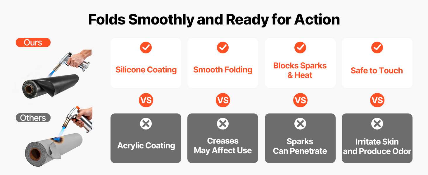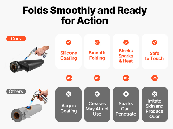 VEVOR 5 x 150 FT silicone-coated fiberglass welding blanket roll withstands temperatures up to 1800°F and offers excellent flame resistance, protecting against welding sparks and molten splatter. Stay safe from fire risks and enjoy a more secure, efficient working experience.