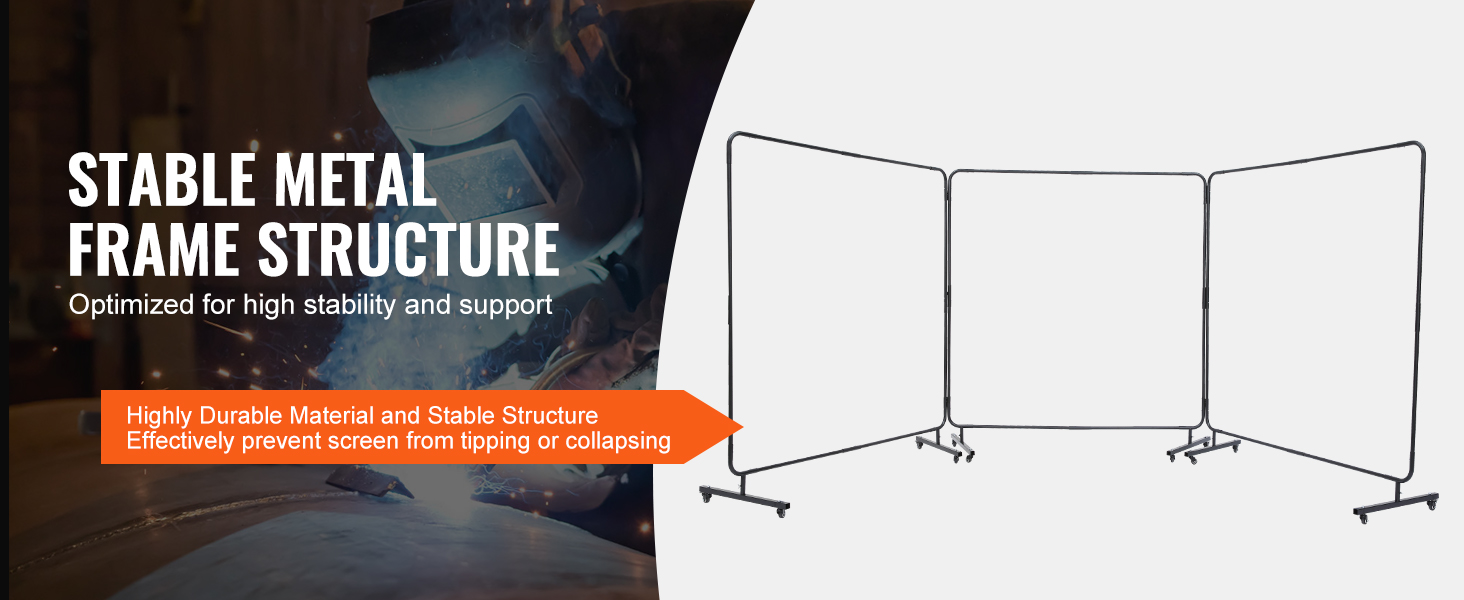 - Stay Safe and Protected: Don't let high temperatures, sparks, molten metal, or splatter affect your work. VEVOR 3-panel safety welding curtains with frame are designed to provide optimal and extensive protection in welding workshops, auto inspections, shipyards, industrial sites and more.