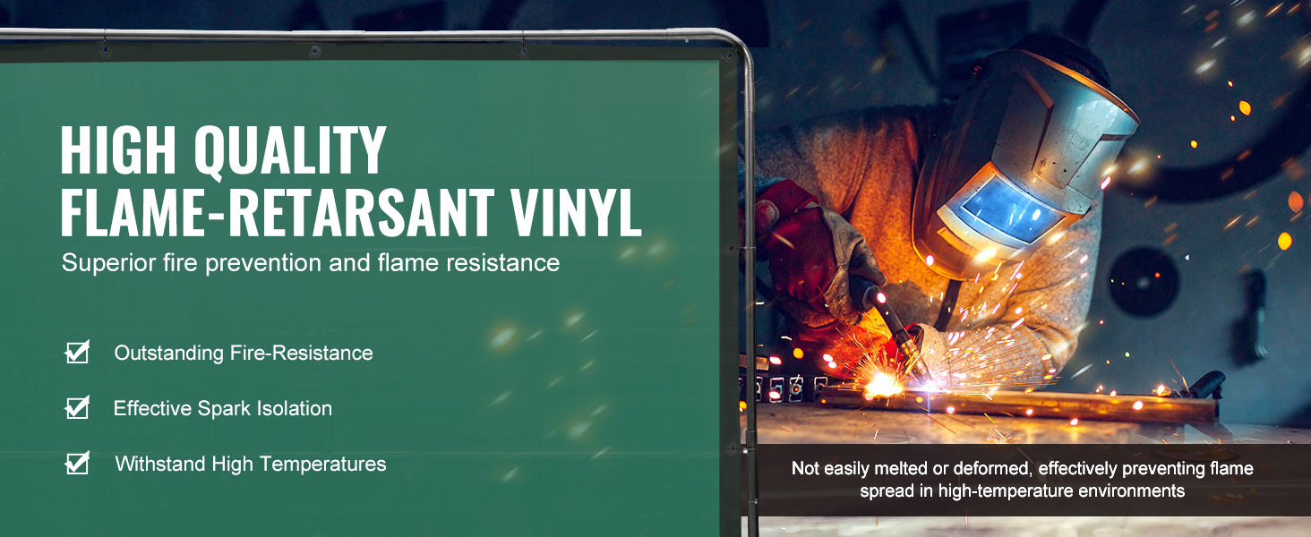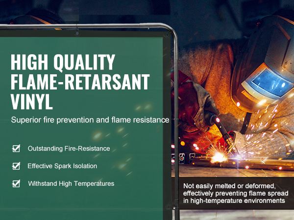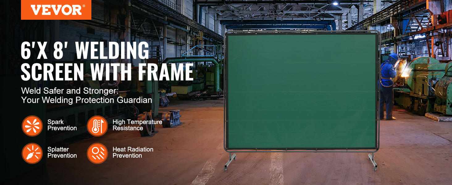 - Stay Safe and Protected: Don't let high temperatures, sparks, molten metal, or splatter affect your work. VEVOR safety welding curtain with frame is designed to provide optimal and extensive protection in welding workshops, auto inspections, shipyards, industrial sites and more.