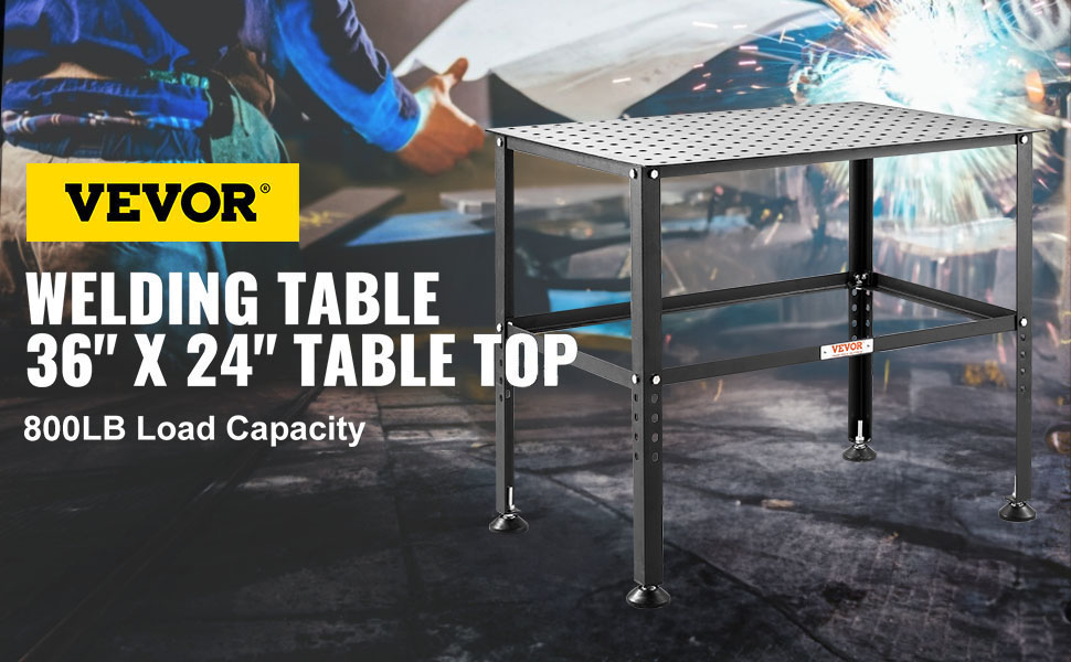 VEVOR 36 x 24-inch welding table – your ultimate welding companion. 800lbs weight capacity, 0.63-inch fixture holes, anti-slip foot pads and spacious desktop promise versatility for your welding projects. Say goodbye to frustrating work surfaces and enhance your welding efficiency.