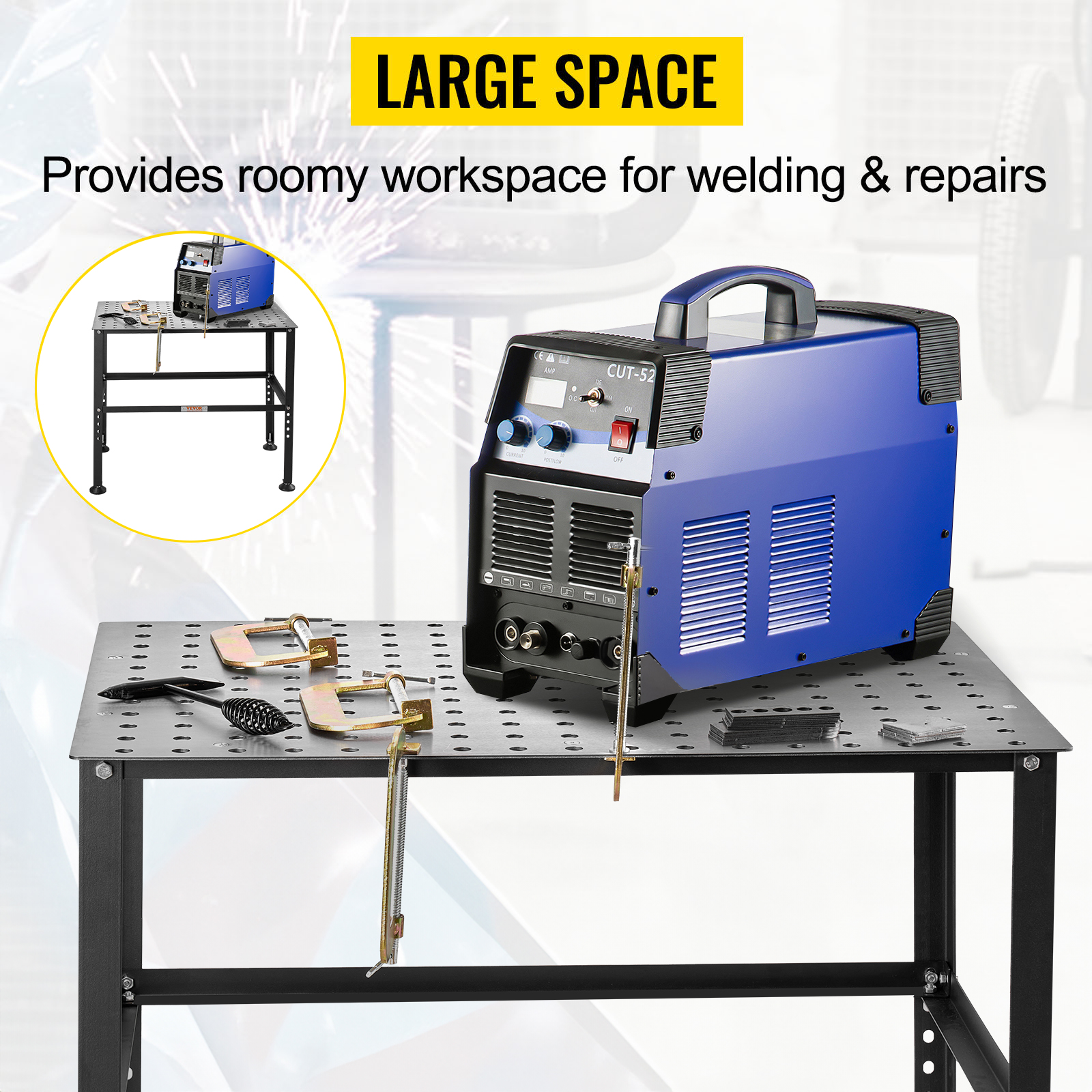 - Welding with Ease: Featuring multiple 0.63-inch fixture holes (spaced 2 inches apart), this welding workbench lets you easily clamp your fixtures, keeping tools within reach and your workspace organized. Say goodbye to clutter and enjoy a more efficient work environment.