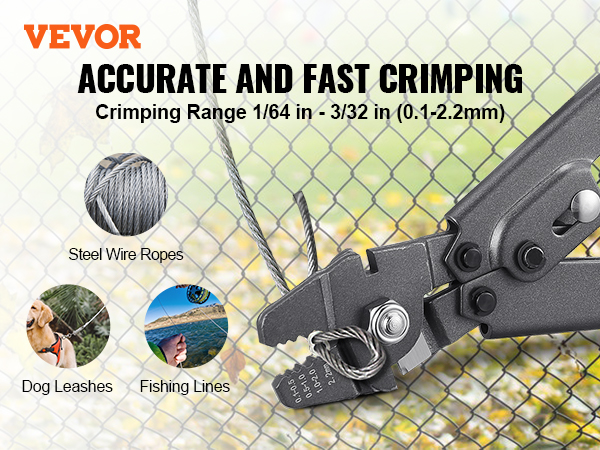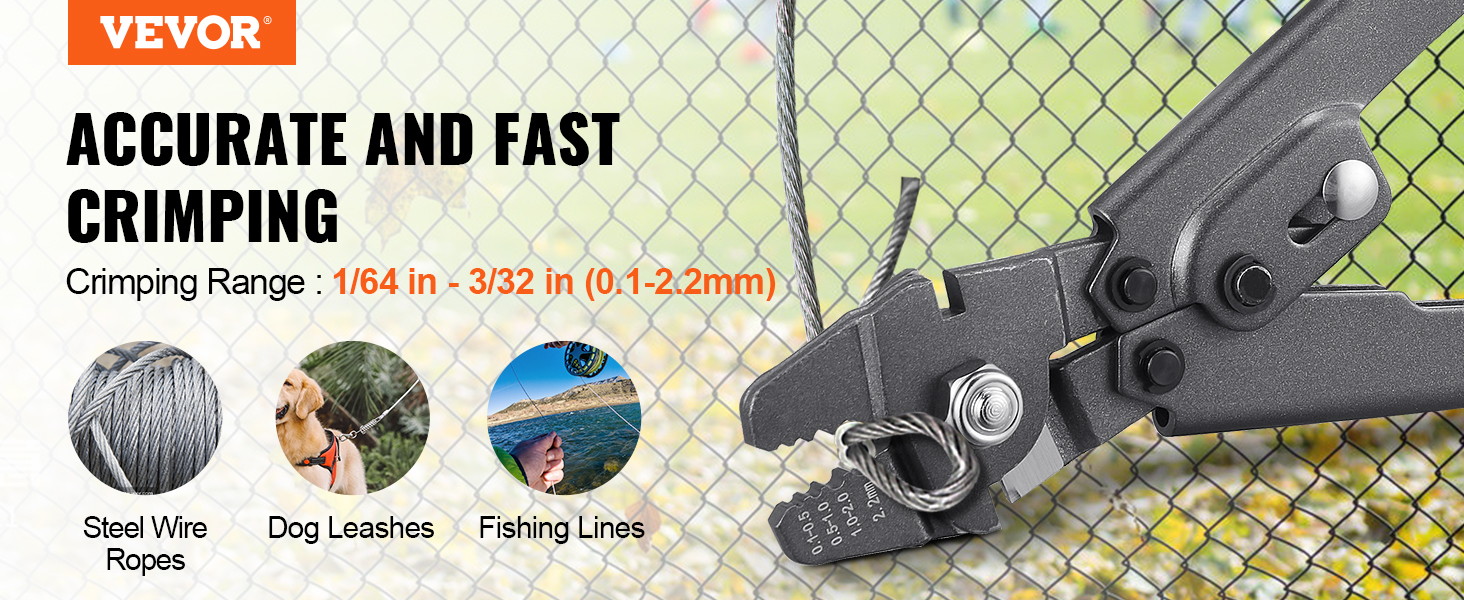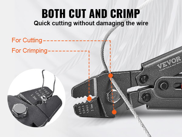 This crimping tool is designed to handle wire rope diameters ranging from 0.1mm to 2.2mm, meeting various crimping needs. This tool is made of sturdy steel material capable of withstanding high forces. Check out our two-in-one crimper for a superior user experience.
