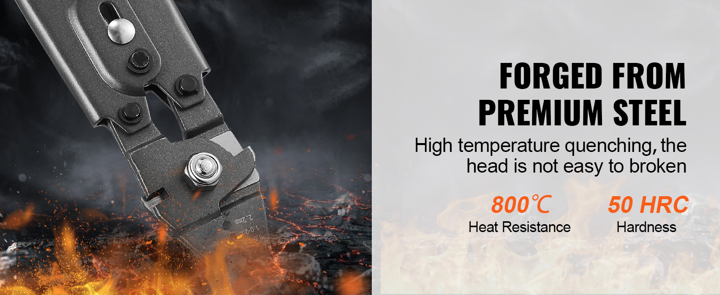 Made from high hardness steel material forged through an 800°C high-temperature quenching process, our wire crimping tool has a hardness of up to 50 HRC. It is durable, strong, and resistant to breakage and wear.