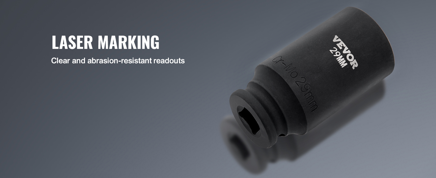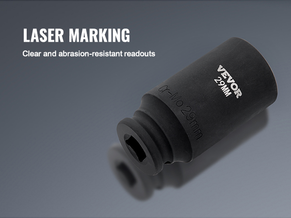 Using laser etching and rolling processes, the extra-large size markings on the sockets are clear and easy to identify even under various lighting conditions. The markings are also resistant to wear.