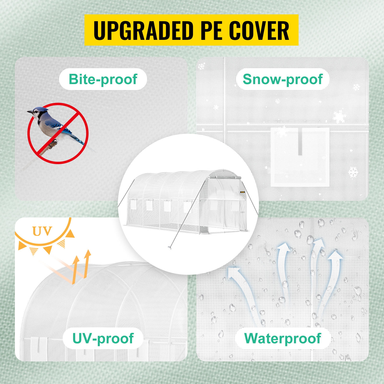 If you are looking for an outstanding greenhouse for your beloved plants or flowers, VEVOR can meet your demands. Our tunnel greenhouse has a reinforced galvanized structure with 1 top beam and 2 diagonal poles to ensure stability. Moreover, the PE cover is also waterproof, bite-proof and snow-proof. Are you ready to create the optimal environment for your plants and flowers to flourish and thrive? Treat your plants right and watch them grow!