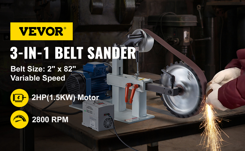 1500W & Three Grinding Types & 2″ x 82″ Belt Size