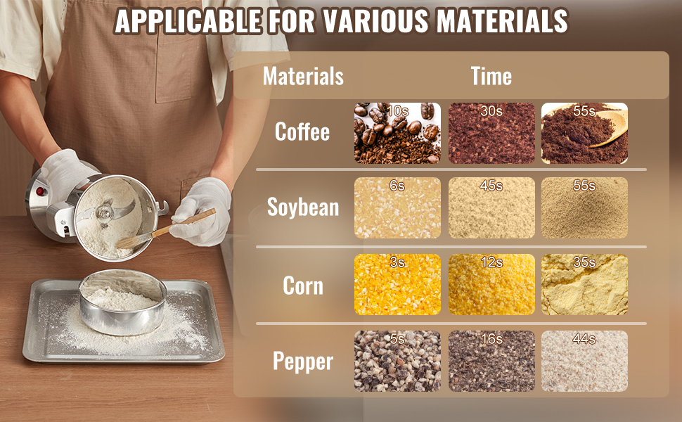 - Durable Material: The electric small spice grinder is constructed from food-grade stainless steel, ensuring durability and free from processing pollutants. The buckle design provides superior sealing and high-security performance. If unsatisfied with the grinding result, coarse particles may be sieved and re-ground for finer consistency.