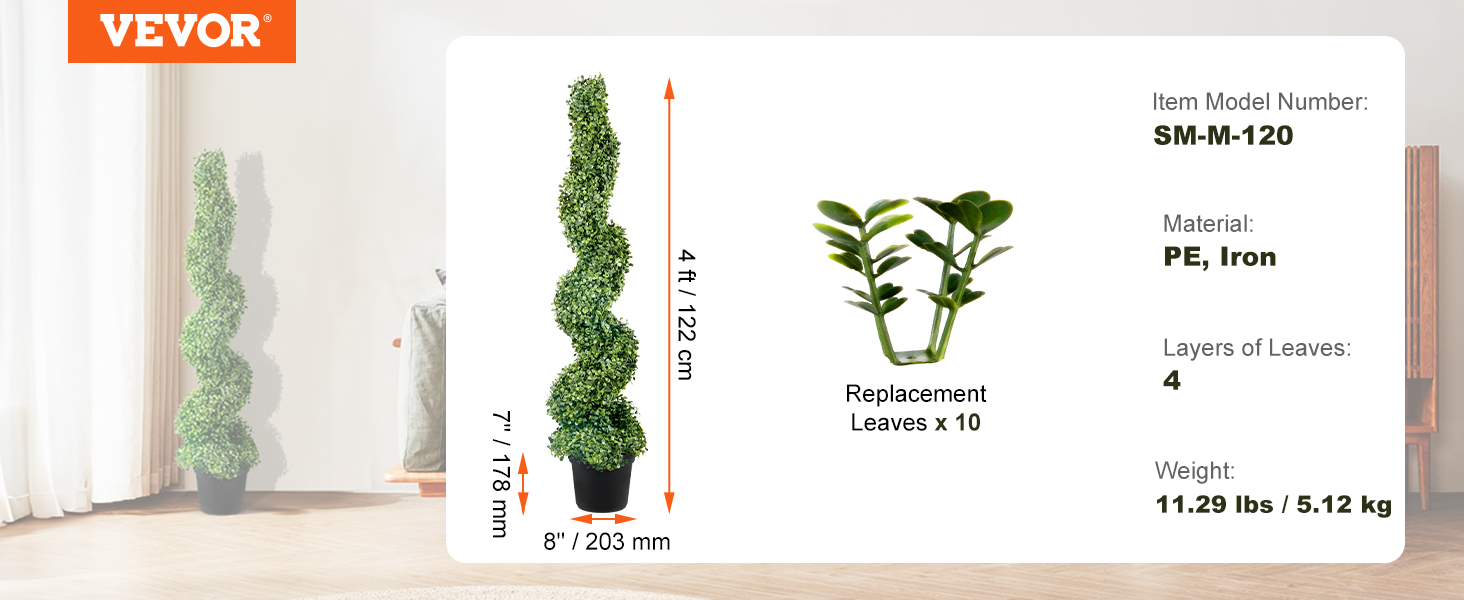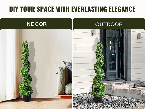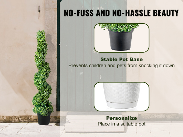 - Enhanced Ambiance: The 5-layer spiral design of the artificial topiary creates a visually striking and intricate pattern. As a reminder, if the leaves accidentally fall off the tree, 10 extra leaves are available for replacement.