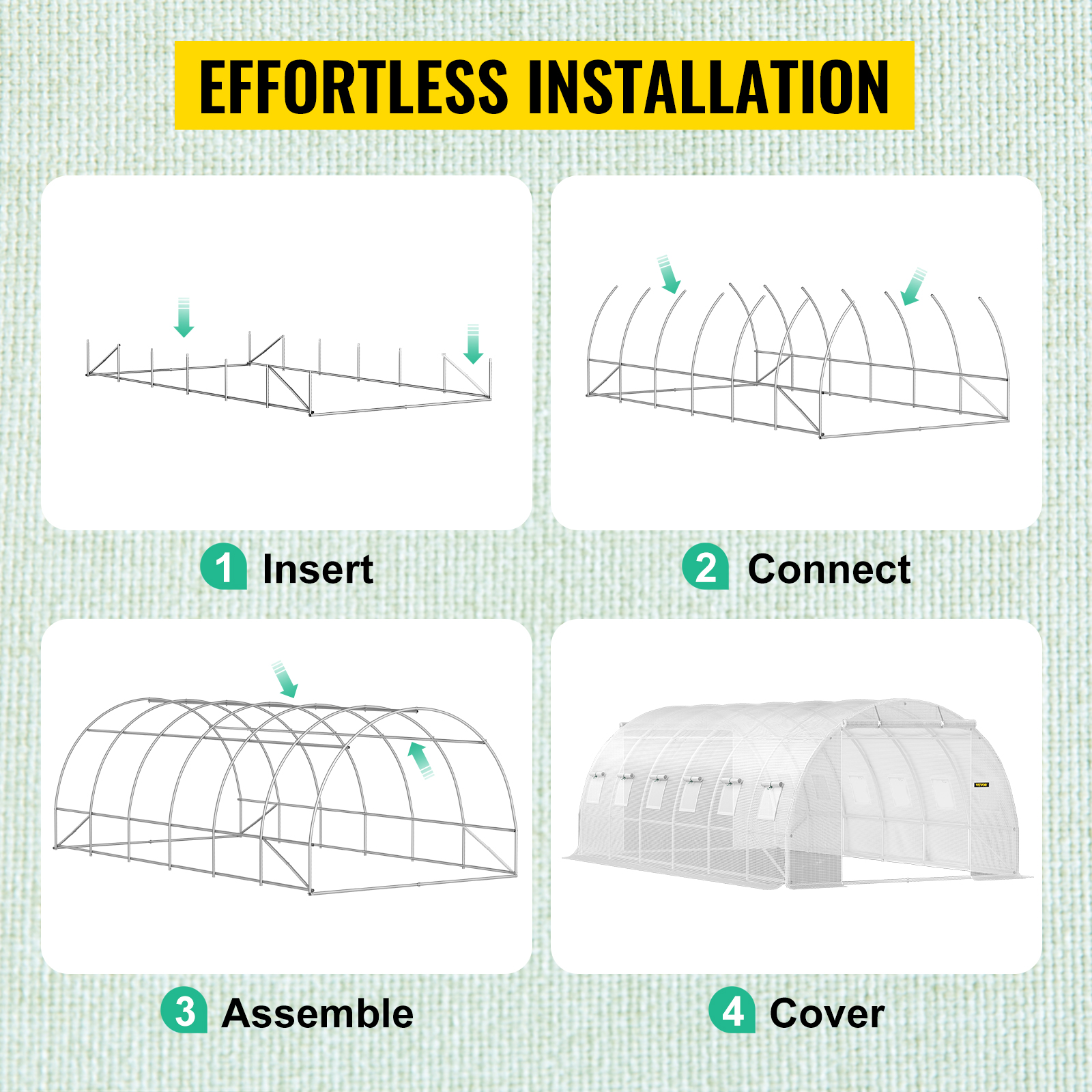 - All Tools Included: The hoop house greenhouse is easy to assemble with connectors; screw covers prevent scratches and rust. Includes: