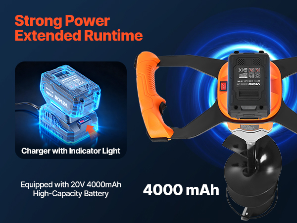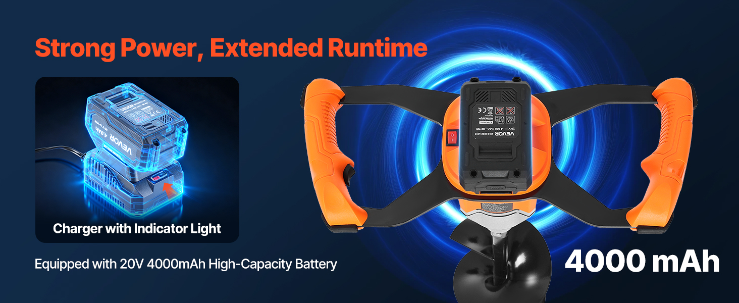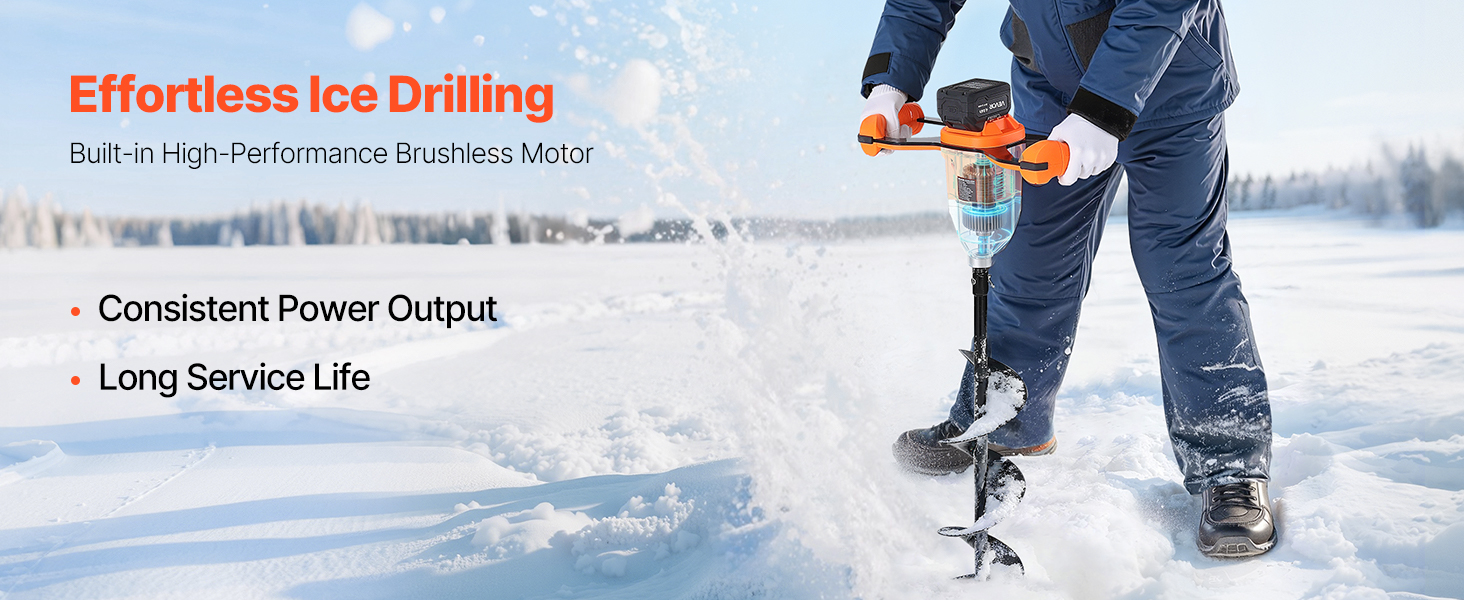 Equipped with a high-performance brushless motor for consistent power, and a 20V 4000mAh large-capacity battery, our ice drill auger ensures extended drilling sessions without interruptions.
