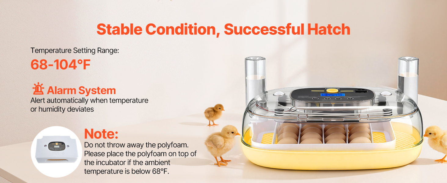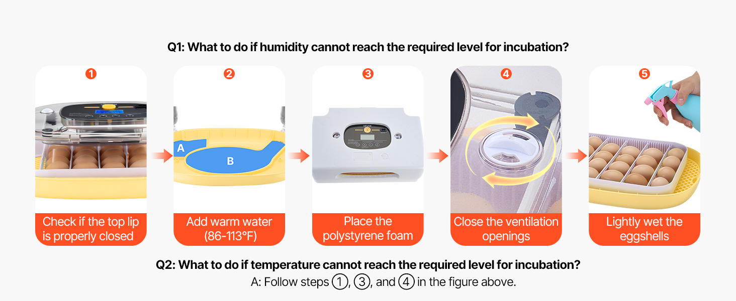 A2: 1. Put machine into foam if environment temperature bellowed 20°C/68°F for better warm keeping. 2. Do not open the lid frequently during incubation, it’ll make the unbroken eggshell dry out and difficult to be broken.
