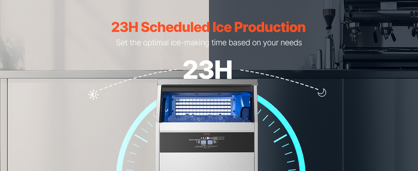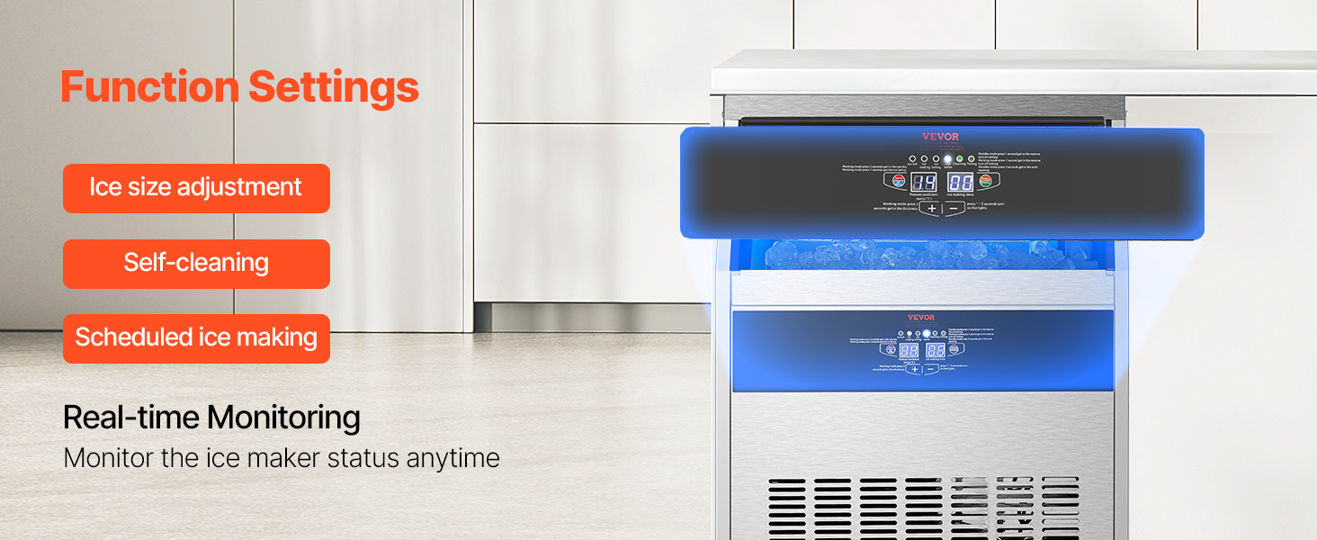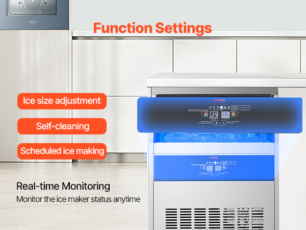 - Smart Control Panel: Our commercial ice maker features an LED digital display and mechanical buttons, giving you precise control over the ice-making process. Adjust ice thickness by increasing or decreasing ice-making time effortlessly. You can monitor the status of the ice maker in real-time with the indicator light on the panel