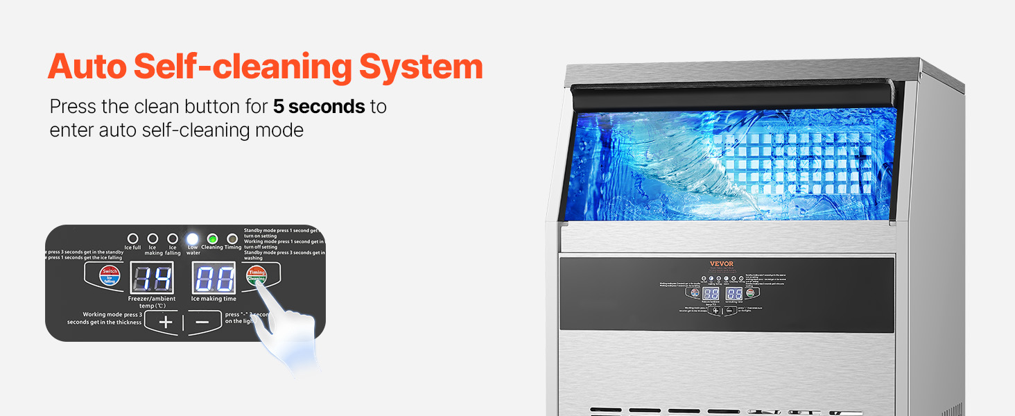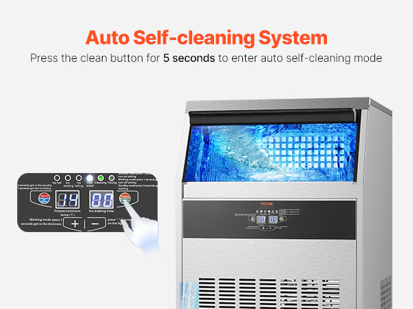 - Automatic Self-Cleaning: Our ice maker has an auto self-cleaning function, which can be activated by simply pressing and holding the clean button for 3 seconds. It ensures a hygienic ice-making environment