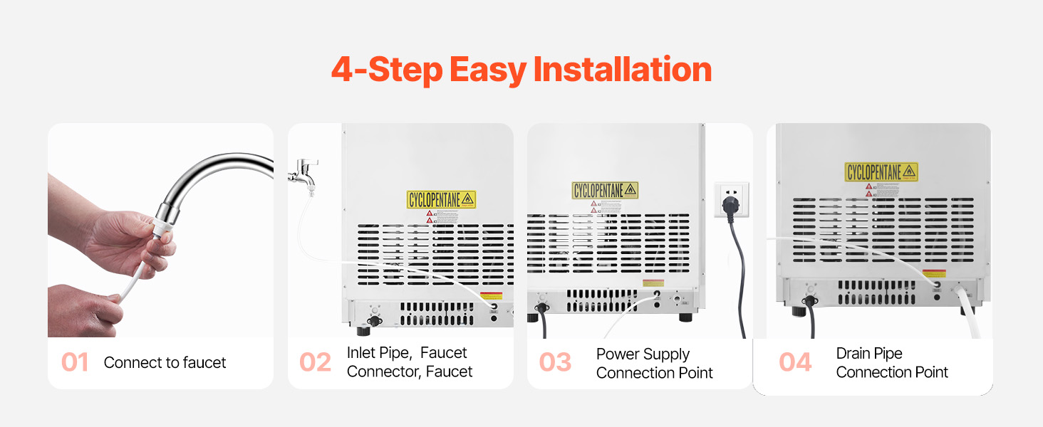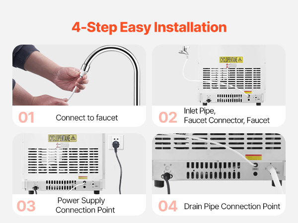 - 8H Insulation: Our commercial ice maker takes insulation to a whole new level. It features a thickness ≥20mm cyclopentane insulation material and a quality shell for effectively isolating external heat. Even when the machine takes a break, your ice cubes stay frosty for a remarkable 6-8 hours