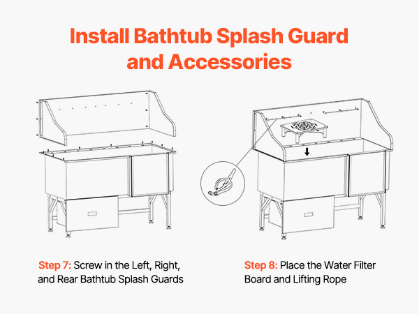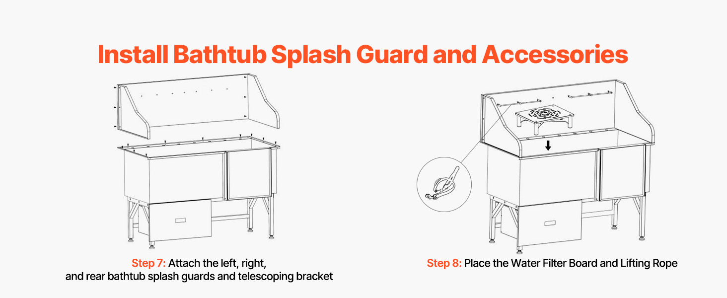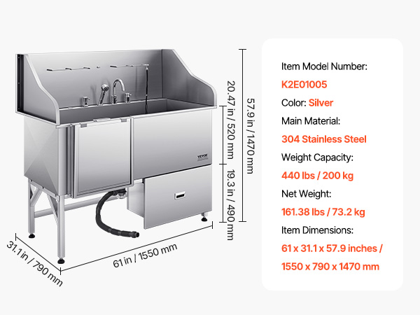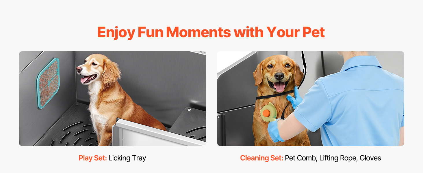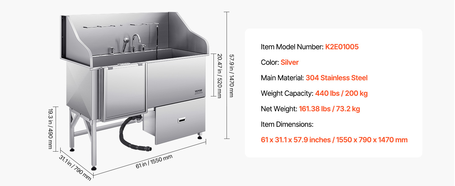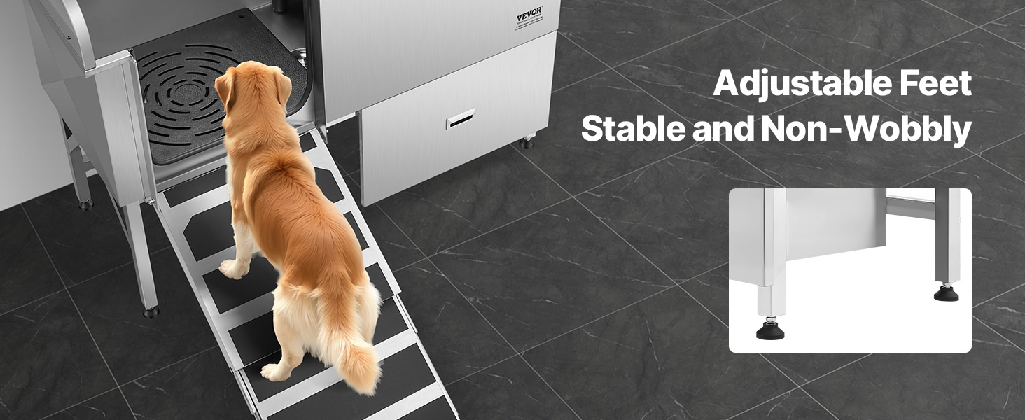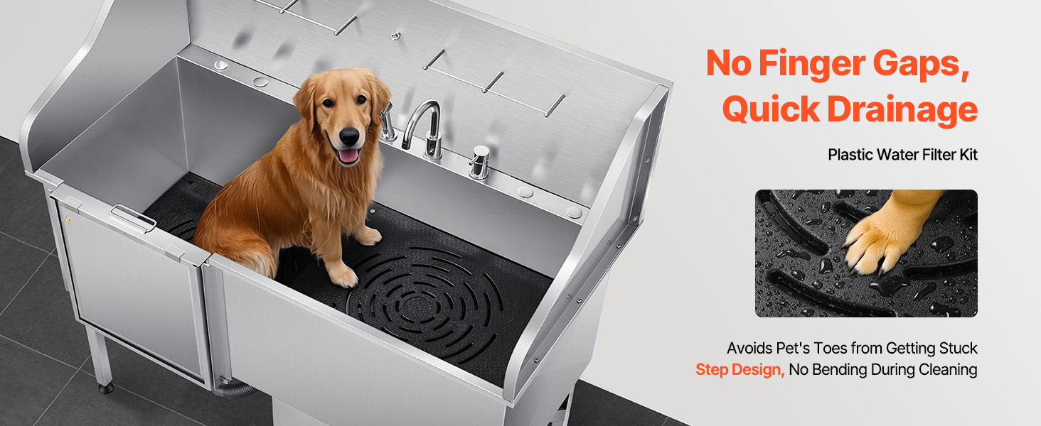 With seamless one-piece welding and built-in sealing strips, this tub ensures no water leakage. Made from stainless steel, it is rust-resistant and sturdy, maintaining its new look over time. The tub features smooth edges, ensuring security for both pets and users during bathing.