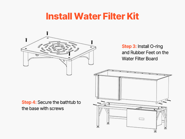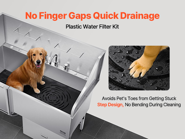 - Upgraded Water Filter Board: The non-slip textured water filter board prevents paws from getting stuck, ensuring secure footing and eliminating slips. With a weight capacity of 440 lbs / 200 kg, it is stable and reliable, allowing pets of all sizes—from small to medium-large—to relax comfortably during bath time.
