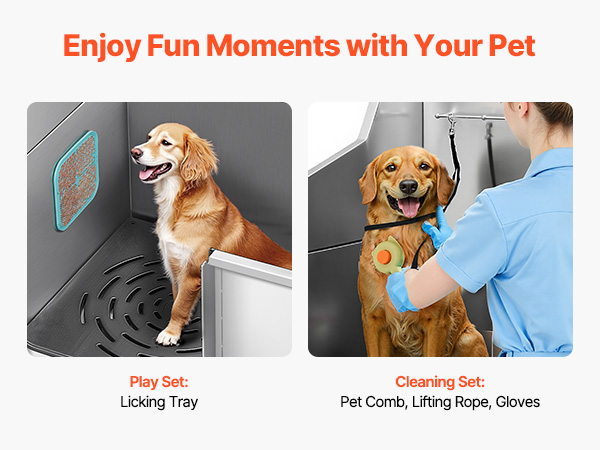 - Complete Accessories: This pet bath station comes with a showerhead, faucet, and direct connection to a home hose, built for durability. It also includes a licking plate, brush, and gloves, ensuring your pet enjoys a full and enjoyable bathing experience.