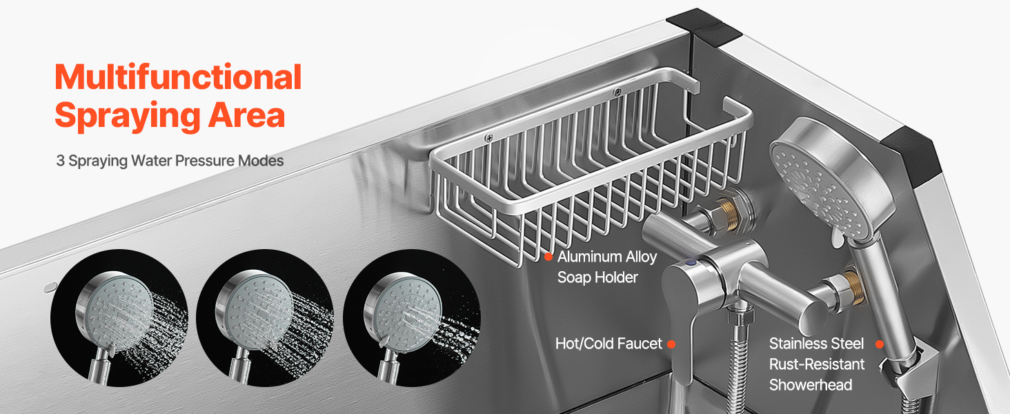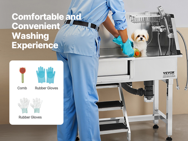 - More Comfortable Grooming: The hot and cold dual-control faucets and three water pressure settings provide versatility. The aluminum alloy soap holder keeps cleaning supplies handy, making pet grooming more convenient.