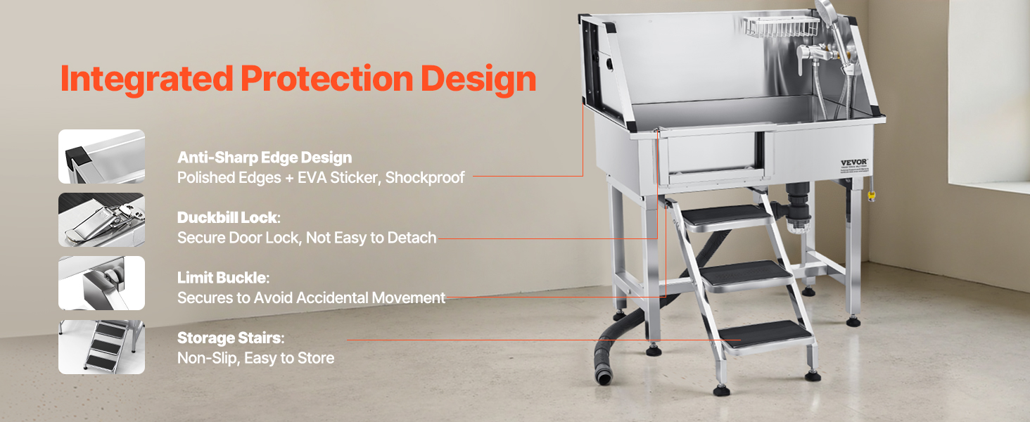 - Anti-Slip and Leak-Proof: The upgraded sealing system and anti-slip stairs with limit holes ensure stability, preventing wobbling and slipping when pets enter and exit. The drainage kit keeps odors at bay, ensuring zero water accumulation and no leaks during bath time.