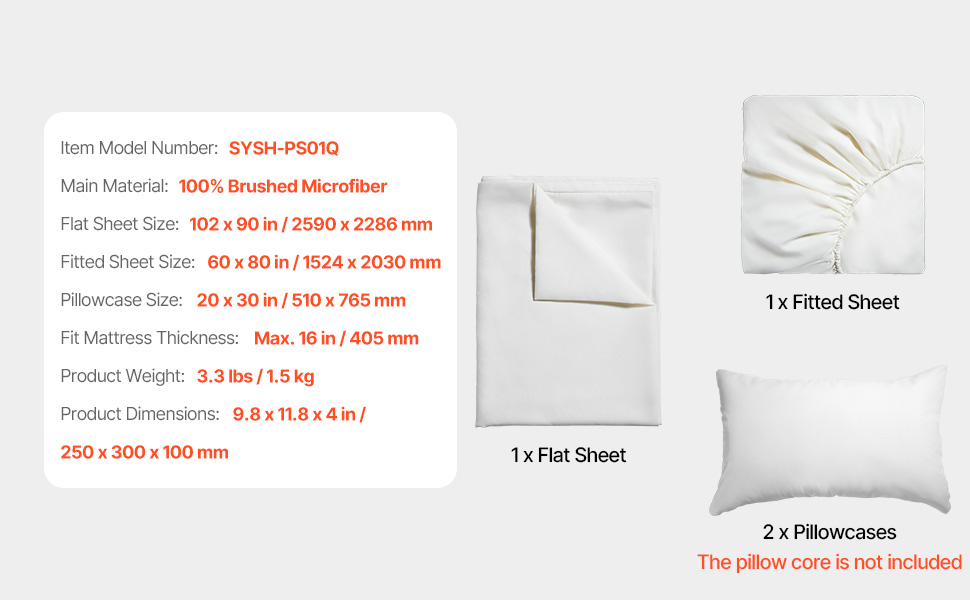 This 4-piece queen bed sheet set includes 2 pillowcases (20″ x 30″), 1 flat sheet (102″ x 90″), and 1 fitted sheet (60″ x 80″). Made from 100% brushed microfiber, it is soft, breathable, and skin-friendly, providing a comfortable sleep experience for a cozy and restful night.