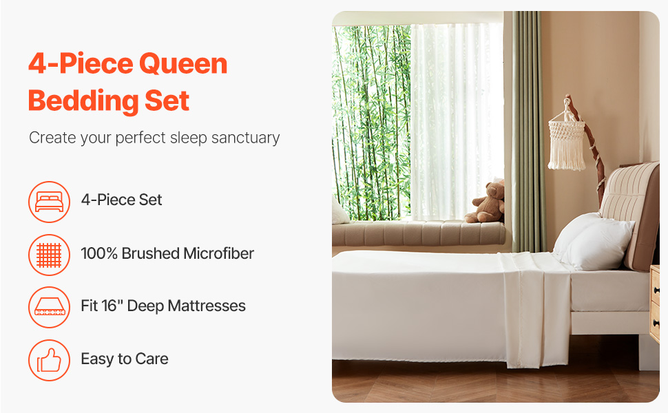 - 4-Piece Queen Bedding Set: Enjoy ultimate comfort with our 4-piece queen bed sheet set. Includes: