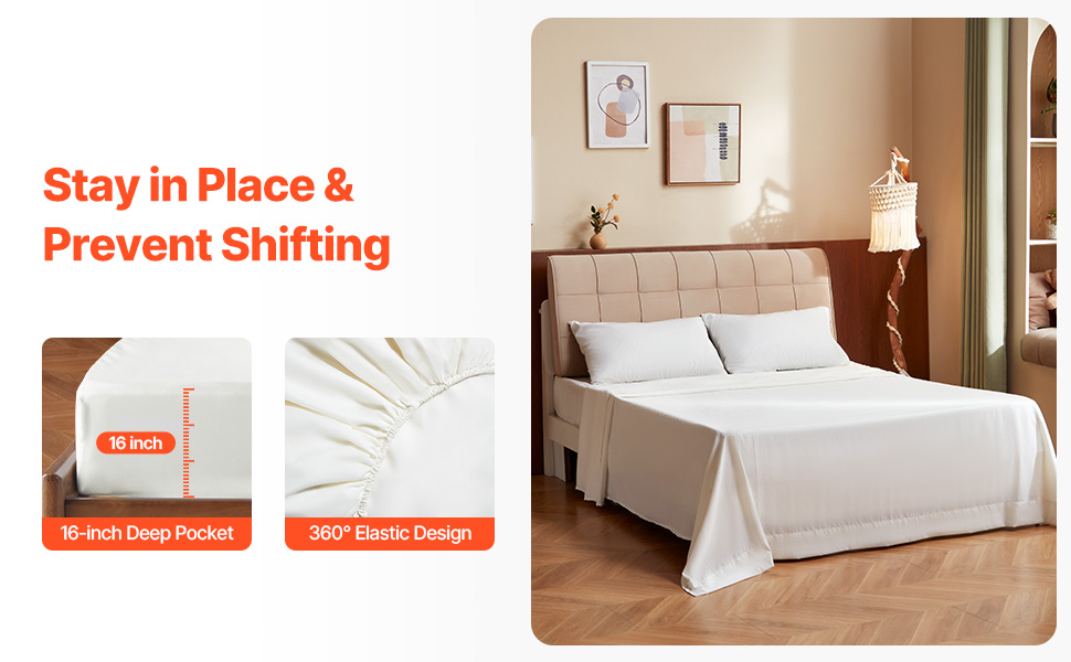 With a deep pocket that fits mattresses up to 16″ deep and 360-degree elastic edge design, this bed sheet stays firmly in place, preventing shifting and ensuring a stable, comfortable rest experience.