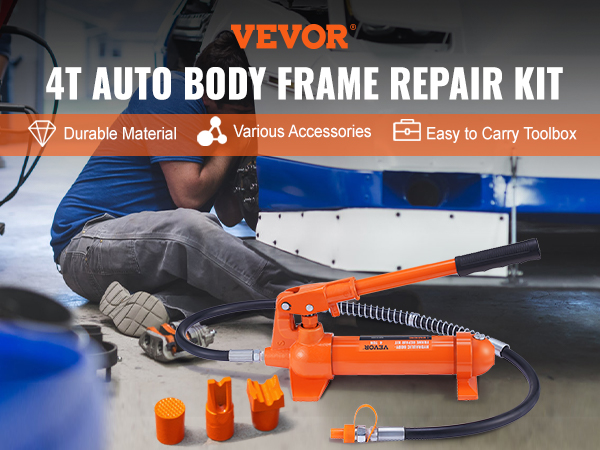 - Multi-function Auto Body Frame Repair Kit: This hydraulic ram kit is the perfect choice for auto-body repairs, frame repairs, and construction sites. Pull, bend, lift, push, straighten and spread metals with this industrial-quality hydraulic kit! The quality components and fittings make this unit perfect for those looking for quality and precision all day!