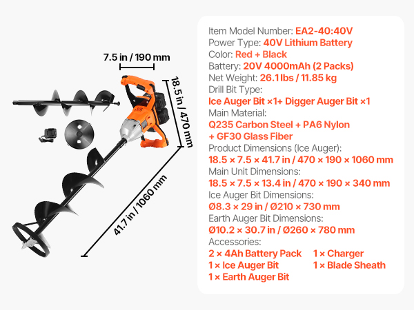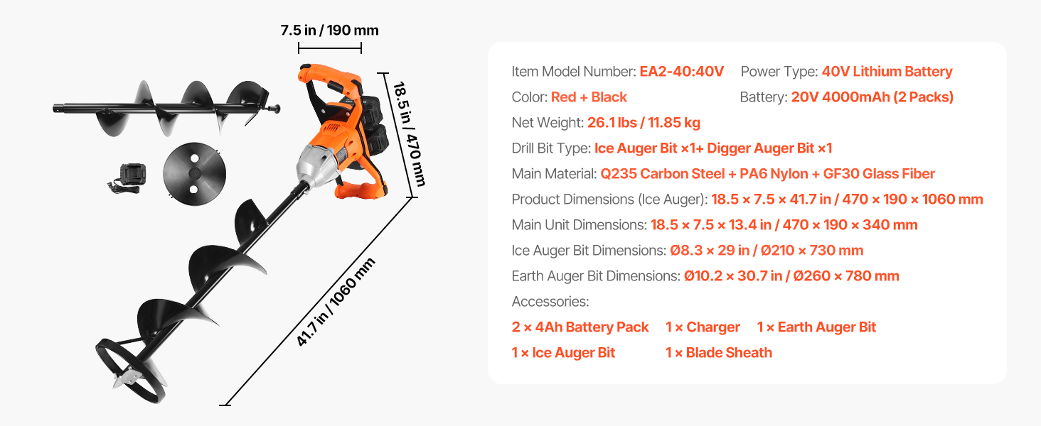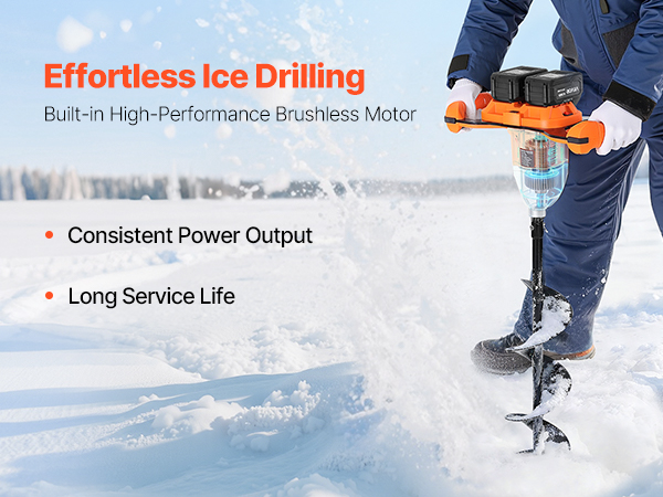 - Powerful and Long-Lasting: The ice fishing auger features a built-in 40V lithium turbo high-speed cutting system with a high-performance brushless motor, delivering strong, stable power with minimal energy loss. Includes 2× 20V 4000mAh batteries, providing reliable operation even in extreme cold for multiple, high-frequency ice drilling tasks.
