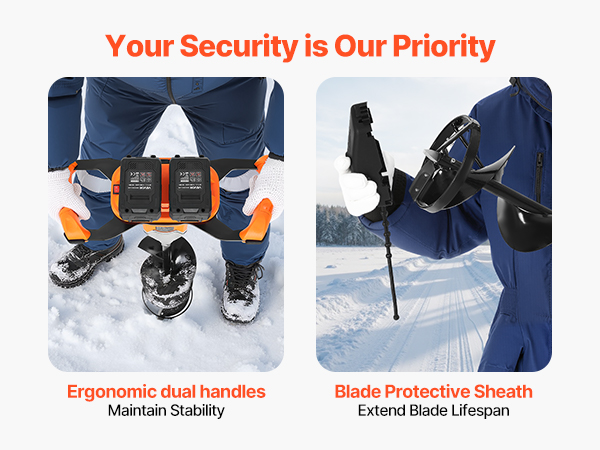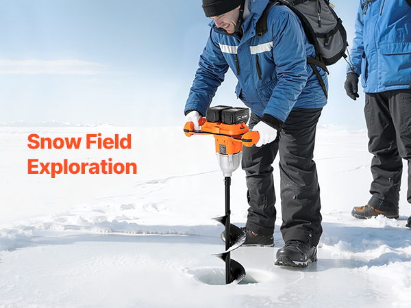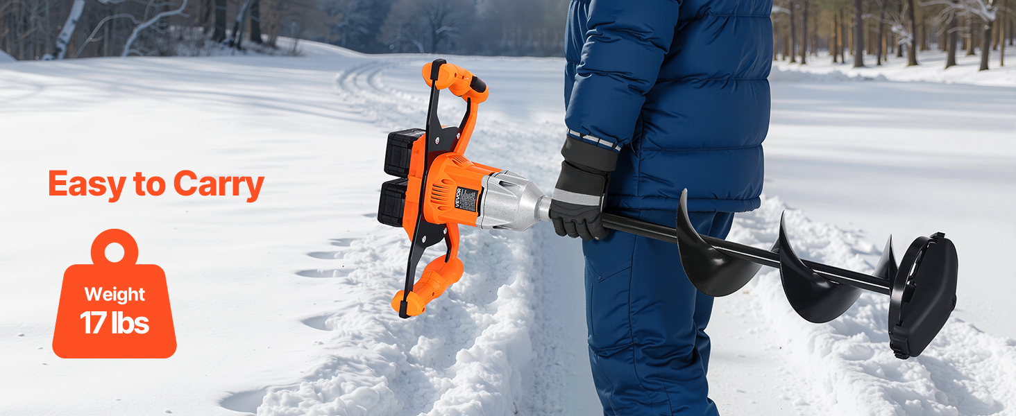 - Easy to Use: This power ice auger is easy to use, even for beginners. Press the safety lock, then pull the trigger to start drilling. Ergonomic dual side handles provide stability and reduce fatigue during use.