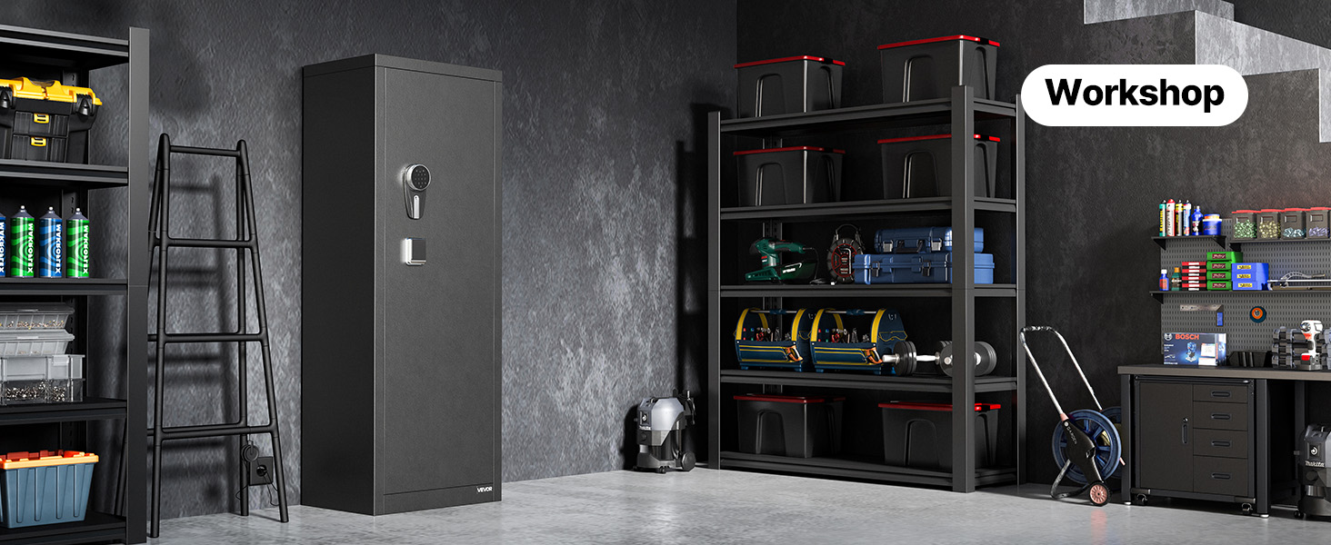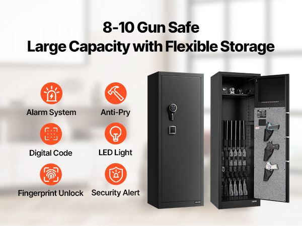 The gun safe can hold up to 8-10 rifles/shotguns and at least 3 handguns, meeting the storage needs of heavy collectors and multi-gun users. Equipped with 3 adjustable gun racks, you can flexibly adjust the internal layout according to the size and number of firearms.
