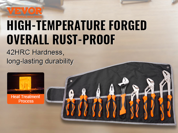 • Advanced Heat Treatment Process: Our pliers tool set undergoes a meticulous heat treatment process, including secondary treatment for high-stress areas such as the cutting edges. This results in enhanced hardness, strength, and resistance to wear, corrosion, deformation, and rust. Trust in our pliers to deliver flawless performance even in humid environments.
