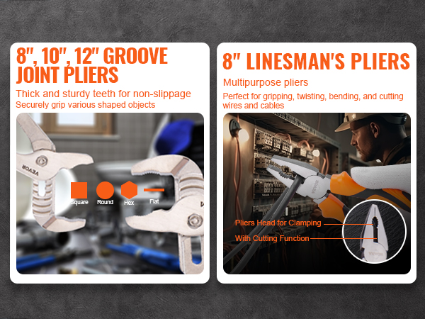 Easily grip objects of different sizes and shapes, including round, square, hexagonal, and flat, with our precise adjustable water pump pliers. Experience the efficiency of linesman’s pliers that combine gripping and cutting functions, making them an indispensable tool for any task.