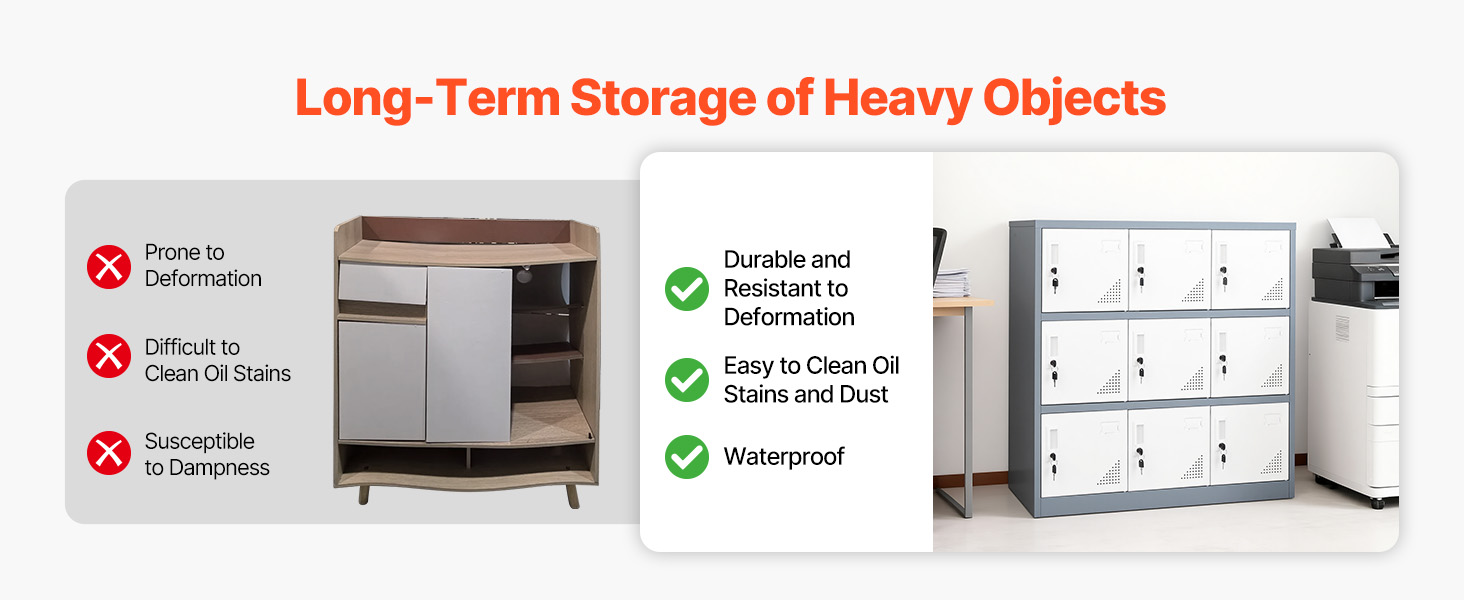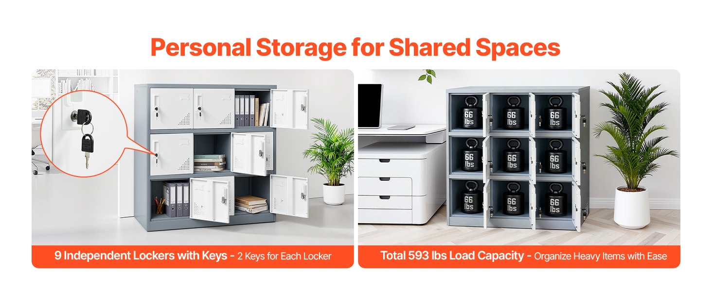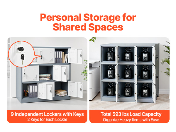 • Personalized Secure Storage: This metal locker features 9 separate compartments, each equipped with 2 keys that operate exclusively for their respective doors. It ensures absolute privacy and security for valuables, making it ideal for storing personal items in shared spaces.