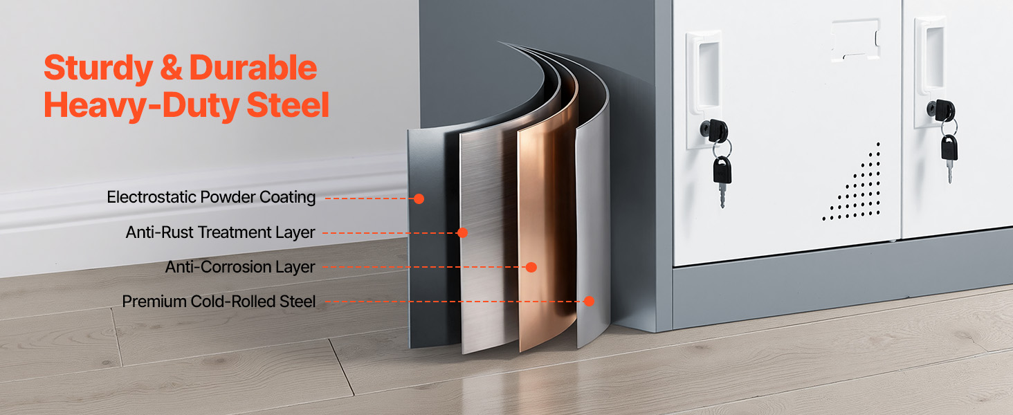 • Sturdy and Durable: Constructed with heavy-duty steel and a rust-, corrosion-, and scratch-resistant finish, each compartment of this steel locker holds up to 66 lbs (29.9 kg), with a total capacity of 593 lbs—ideal for office files, gym equipment, or other items