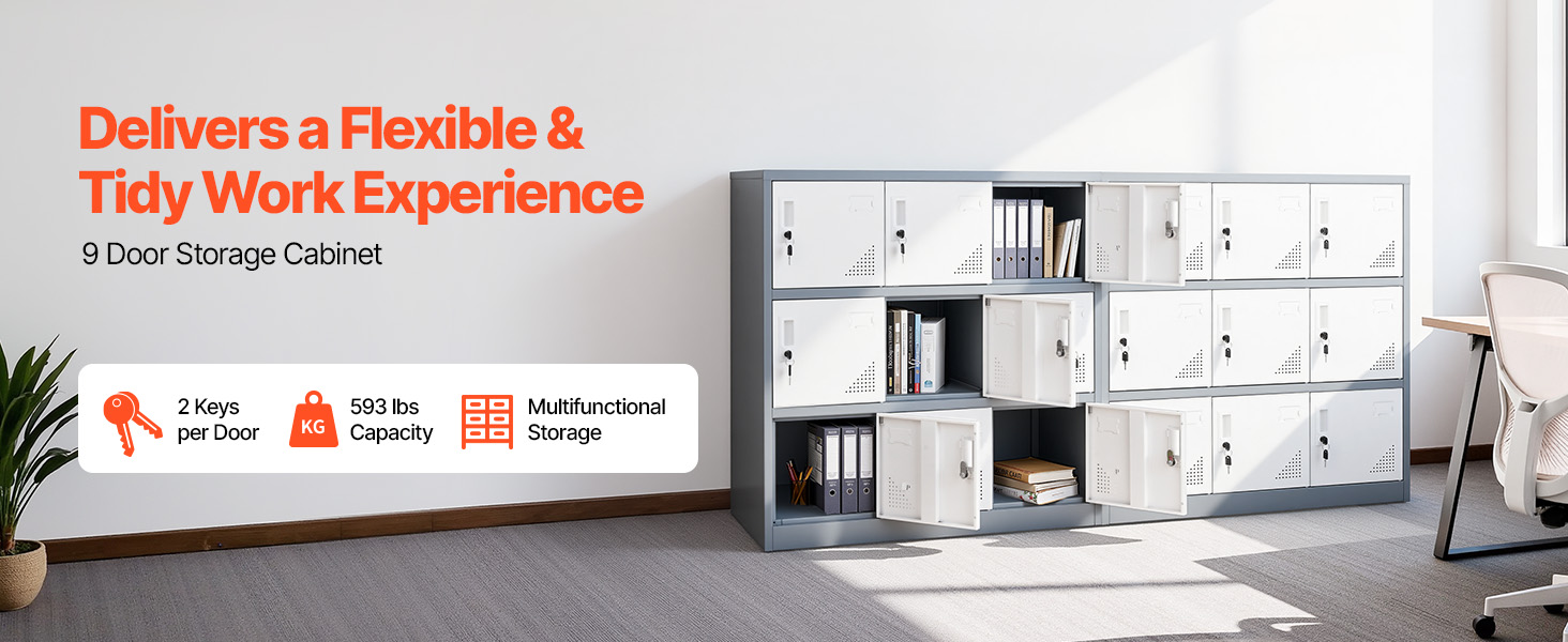 • Multi-Purpose Storage: Provide secure personal storage for everyone with this 9-door locker. Ideal for offices to store confidential files and laptops, schools for backpacks, books, and sports gear, or gyms to keep clothes, wallets, and phones secure.