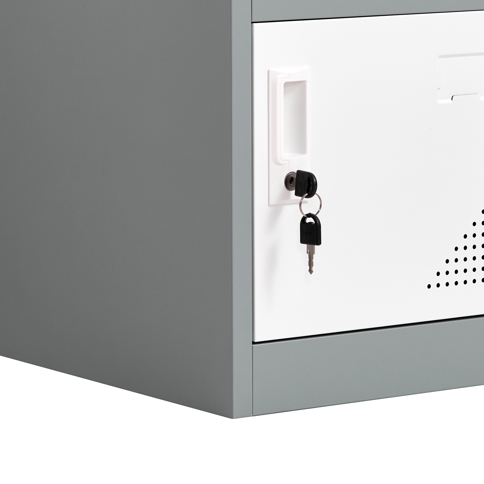 With 9 separate compartments, each equipped with 2 dedicated keys, this metal locker is ideal for assigning personal storage to team members or students in shared spaces. Its stylish design promotes a neat, professional, and secure environment.