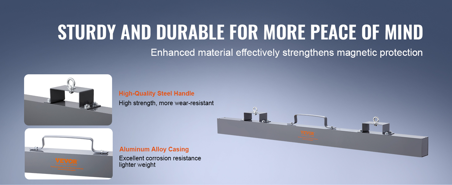 - Enhanced Efficiency: The hanging magnetic sweeper features an improved design for exceptional performance. Constructed with a heavy-duty aluminum casing and premium steel lifting handles, its sturdy and durable build ensures long-term reliability in demanding environments.