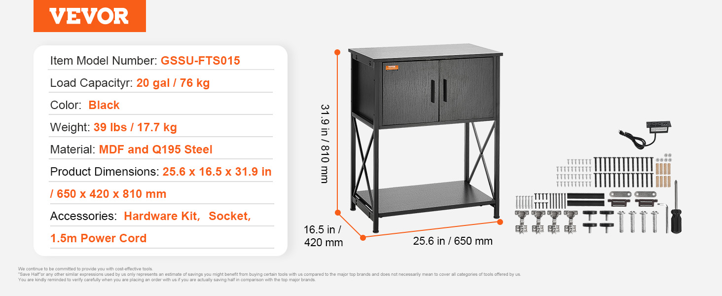 1 review for Aquarium Stand, 20 Gallon Fish Tank Stand, 25.6 x 16.5 x 31.9 in Steel and MDF Turtle Tank Stand, 167.6 lbs Load Capacity, Reptile Tank Stand with Storage Cabinet and Embedded Power Panel, Black
