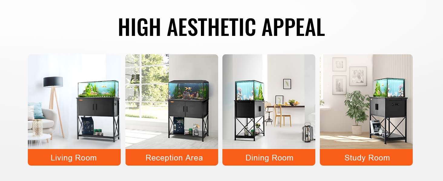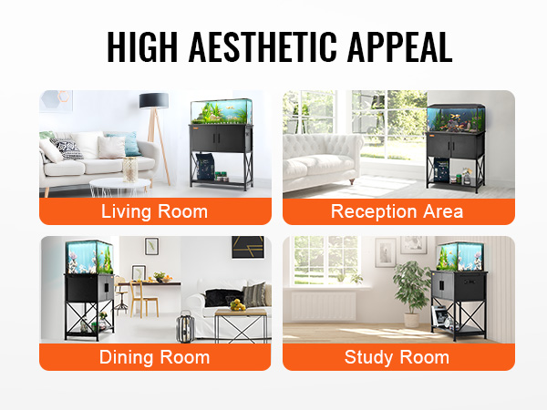 - Stylish Design: Our aquarium stand features a sleek black exterior, effortlessly blending with various interior décor styles. You can place it in your living room, reception area, dining room, study, and more.