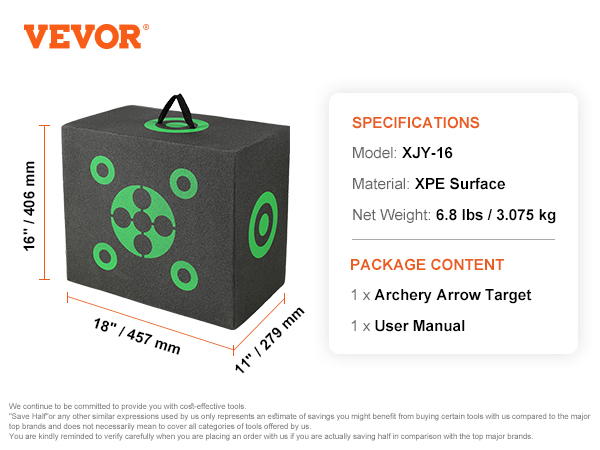 - Portable & Compact Design: This archery target features a convenient size of 16"x18"x11" and weighs a mere 6.8 lbs, making it exceptionally portable and easy to transport. Whether you're practicing at home or heading to the archery range, this compact target is a breeze to carry.