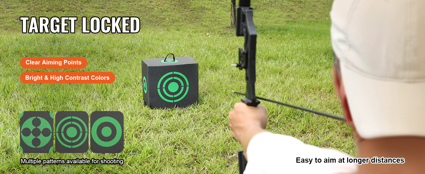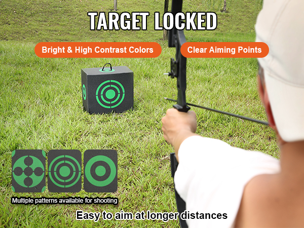- All-Side Shooting: With superior visibility and clear aiming points, this arrow target enables precise aiming at extended distances. Its bright, high-contrast colors enhance target acquisition, while multiple customizable patterns accommodate diverse shooting preferences.
