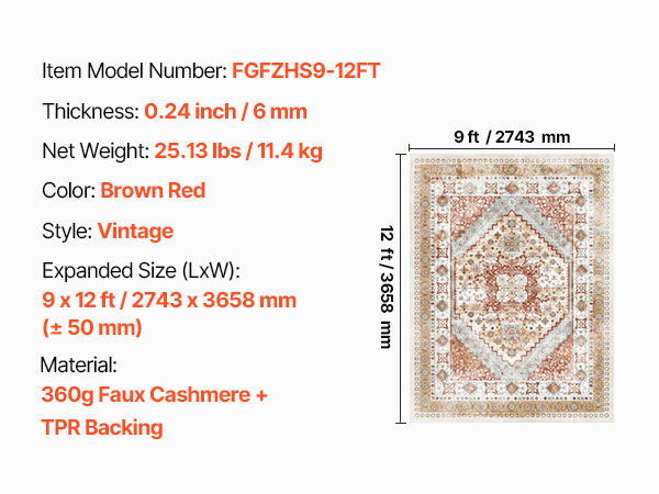 | Expanded Size (LxW) | 9 x 12 ft / 2743 x 3658 mm (± 50 mm) |
