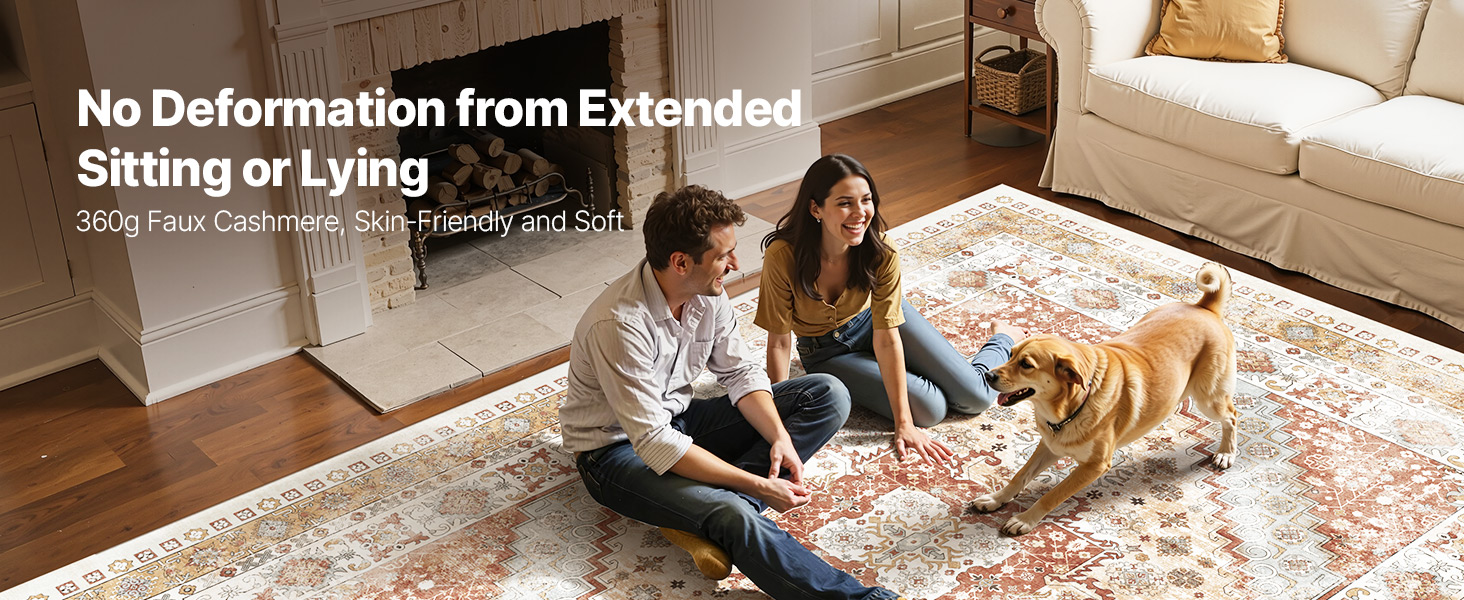 - Machine Washable: Engineered with TPR-grip backing and luxe faux-cashmere edging that lies obediently flat. Survives washing machines like a champ – wash, spin, gentle shake, done! We recommend avoiding prolonged use of high-powered robot vacuums for cleaning to preserve the rug's pristine condition