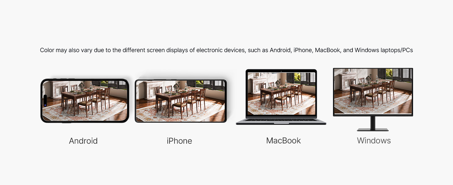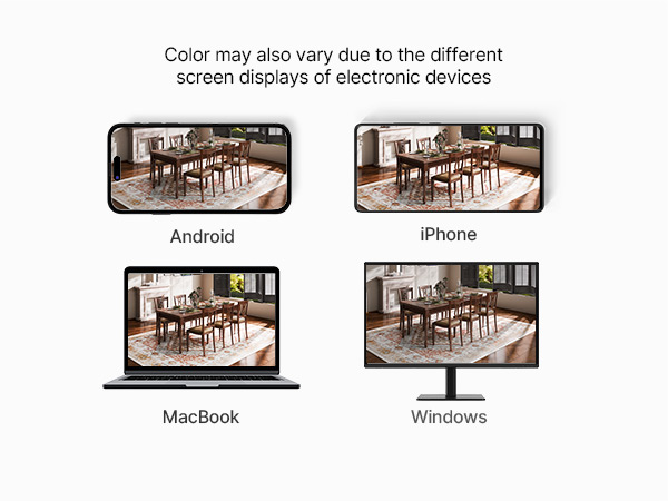 - Color Note: Actual rug colors may appear slightly different due to variations in screen resolution and ambient lighting. Think of it as your rug's handcrafted charm adapting to your space's unique glow.