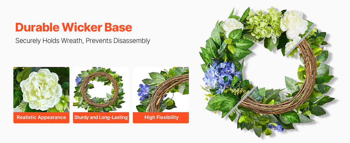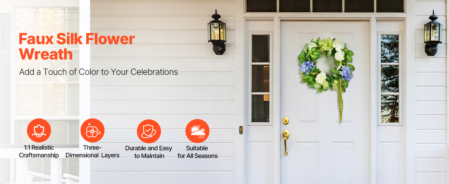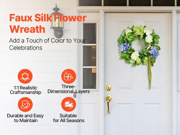 - Premium Silk Fabric: This all-season wreath features flowers with vibrant, long-lasting colors.