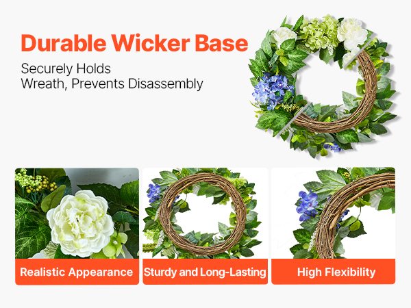 Made from high-quality wicker, this all-season wreath’s base features a realistic appearance and sturdy structure. It provides a solid foundation for your creative decorations, maintaining beauty and stability for long-lasting use, whether for home decor or special occasions.