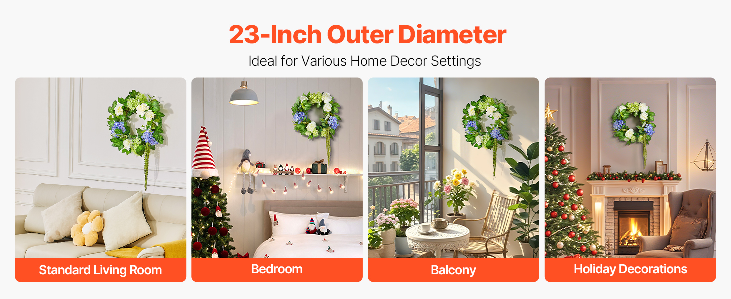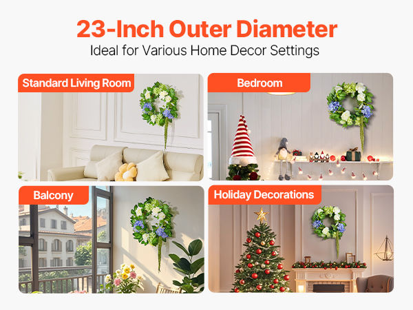 - Ideal-Sized Wreath: When fully expanded, the faux wreath measures approximately 23 in in width. Whether hung on a front door, wall, outdoors, indoors, windows, fireplaces, or tabletops, it adds natural beauty without overwhelming the space.