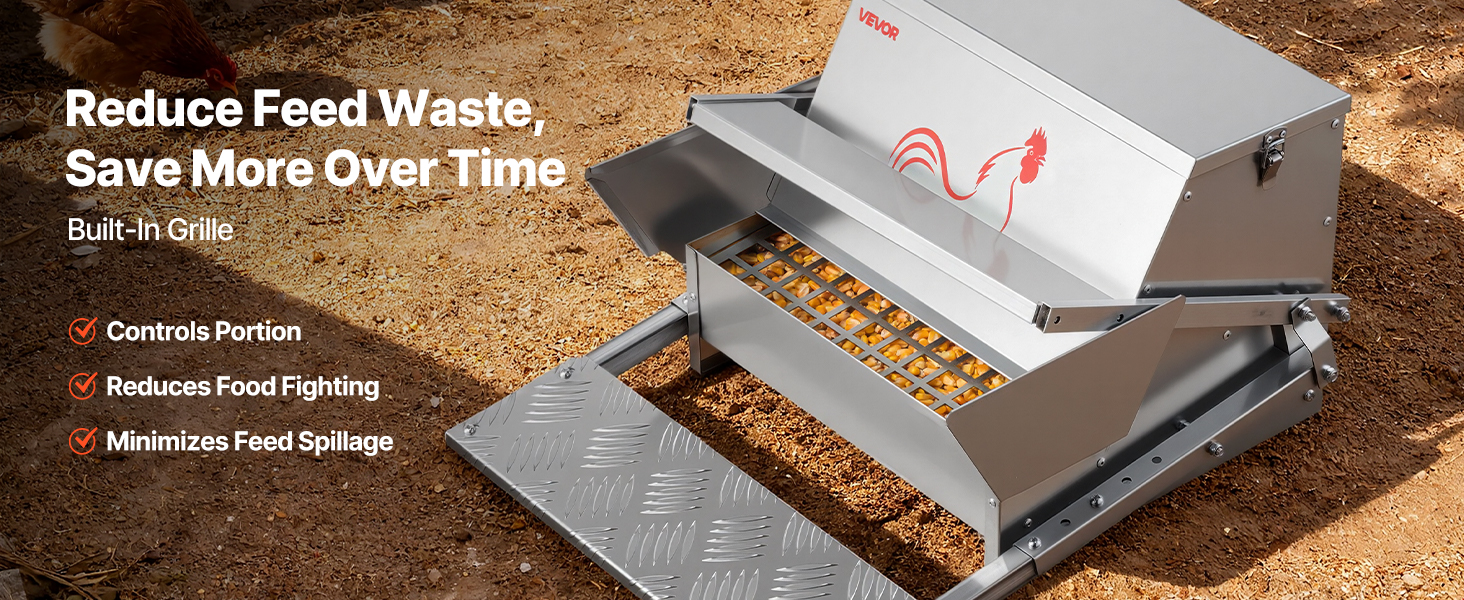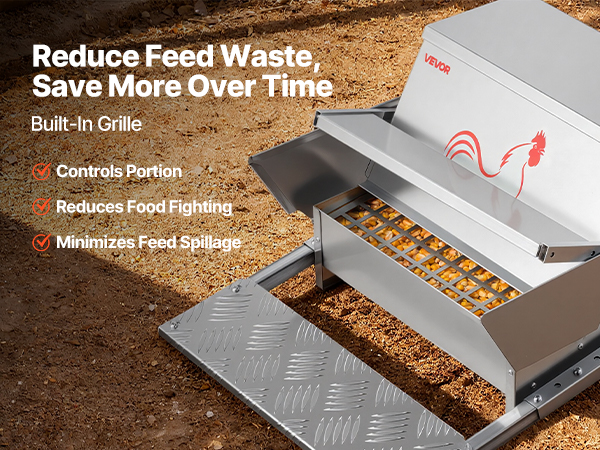- Cleaner Coop, Less Waste: Say goodbye to messy, scattered feed. This automatic poultry feeder features built-in grilles that minimize scattering, avoiding feed overflow and waste. Keep your coop cleaner and save on feeding costs.