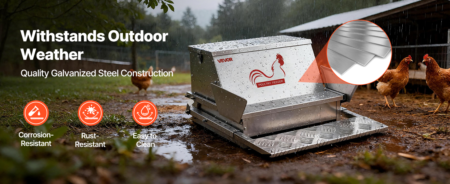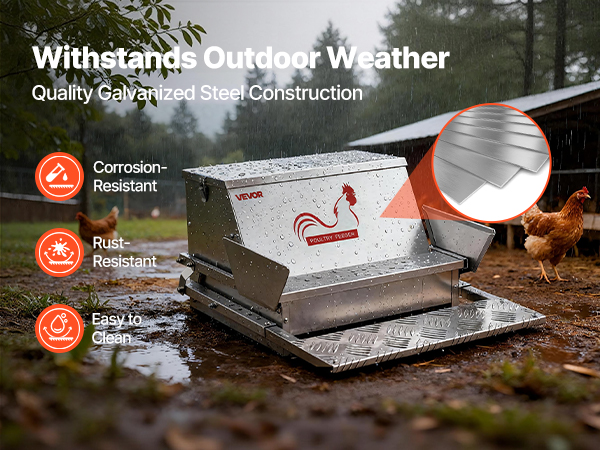 - Durable & Built to Last: Crafted from galvanized steel, this automatic chicken feeder is corrosion-resistant, rust-proof, and easy to clean. Ideal for indoor or outdoor use in changing weather. Comes with a clear user manual and tools for easy assembly.