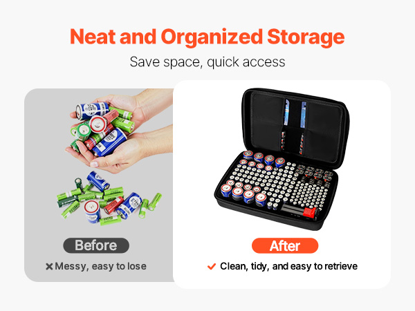 With separate compartments for different battery types and sizes, this battery storage organizer reduces the risk of batteries scattering or getting lost. It allows for fast and accurate retrieval, saving time by avoiding the need for extensive searching.